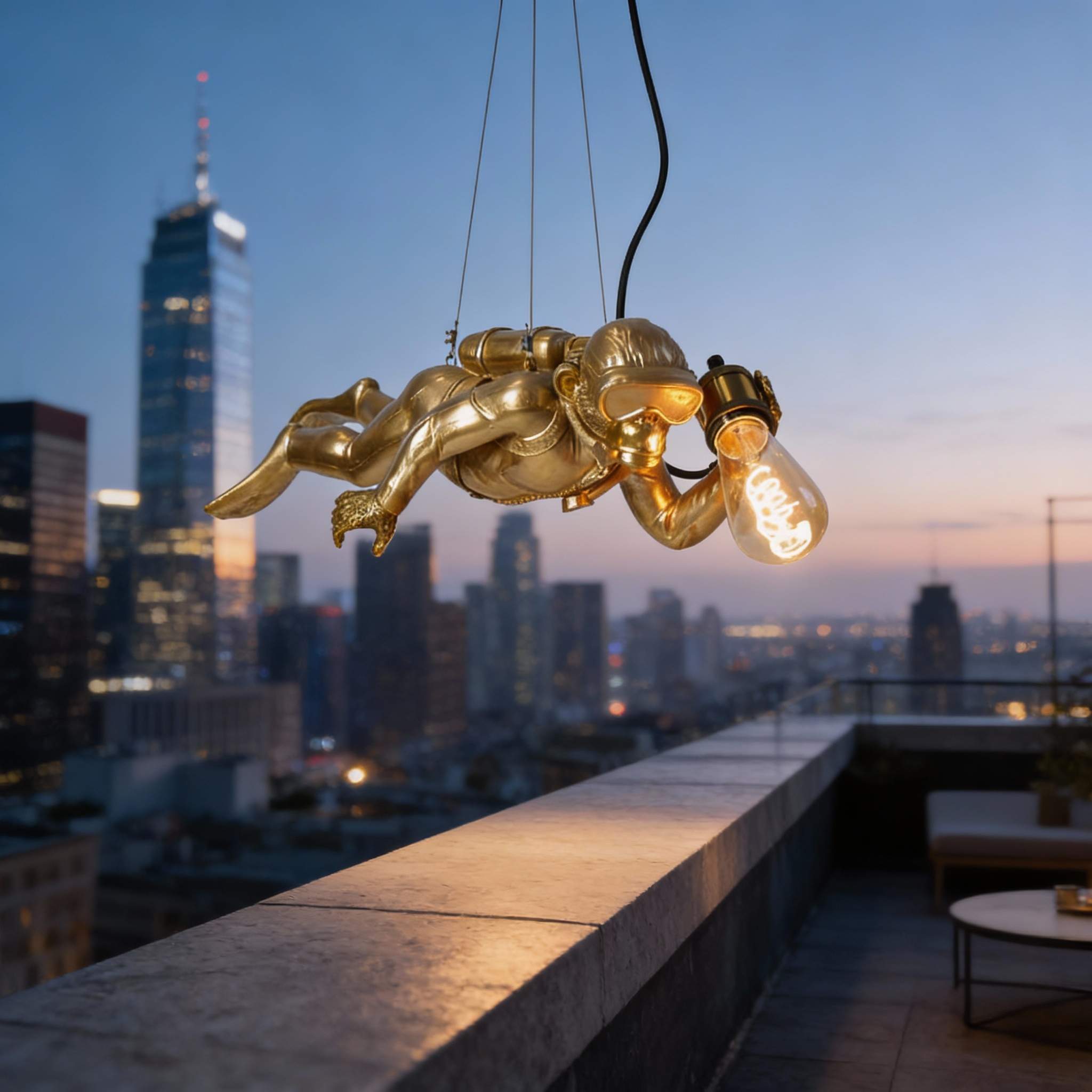 Med denna skulpturala taklampa, Diver Dave, dyker WERNS® ner i undervattensvärlden. Diver Dave är en del av den ansedda kollektionen av djurlampor från designduon.
