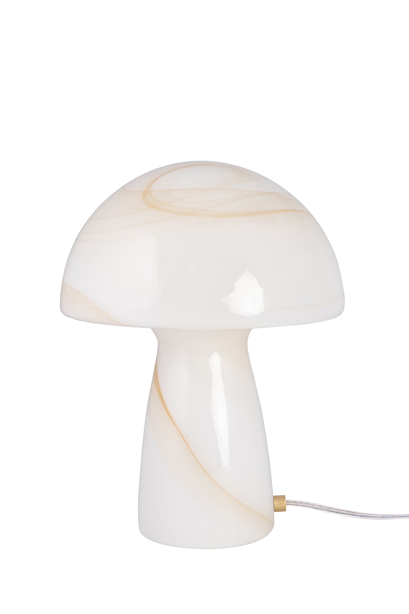 Med inspiration från skogen kommer denna nätta svamplampa med sitt vackra vita och ljusbruna glas. Den ger ett behagligt soft ljus och gör sig fint i en bokhylla eller på ett sidebord. Lampan är tillverkad i vitt glas med mönster i ljusbrunt.